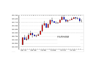 実は、株式市場が開ける前に一度大きく円安方向に振れています。これは、バーナンキFRB議長が、インフレ防止の必要性を示唆したことから、低金利政策の長期化が避けられるという期待が高まり、ドルが買われた影響が大きかったと見られます。