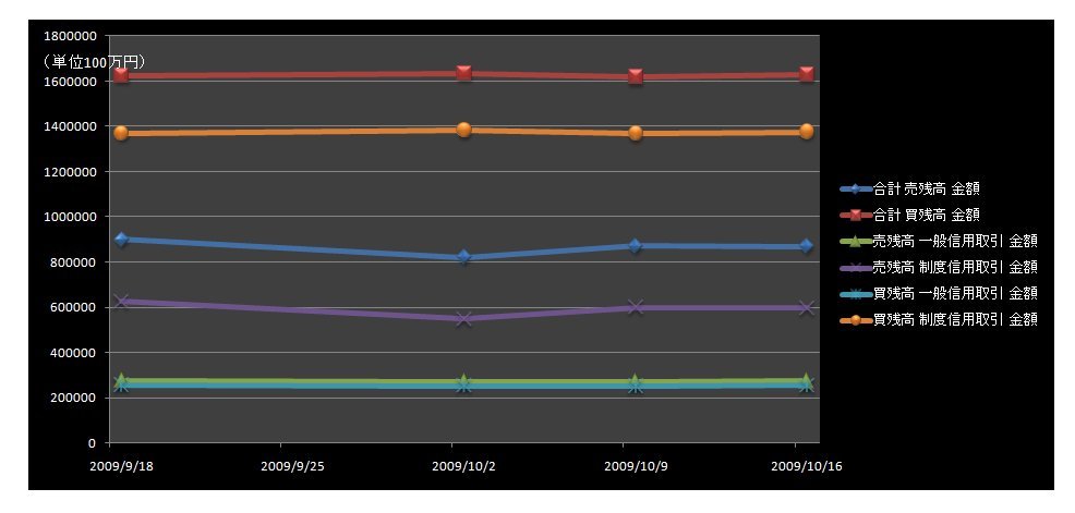 2009/10/20 - tetsuさんの株式ブログ。タイトル:「信用取引現在高(一般信用取引・制度信用取引別)」 本文:東京証券取引所が20日発表した16日申し込み時点の信用取引の買い残高(東京・大阪・名古屋3市場、制度信用と一般信用の合計)は2週ぶりに増加した。買い残高は1兆6294億円と、9日申し込み時点と比べて1
