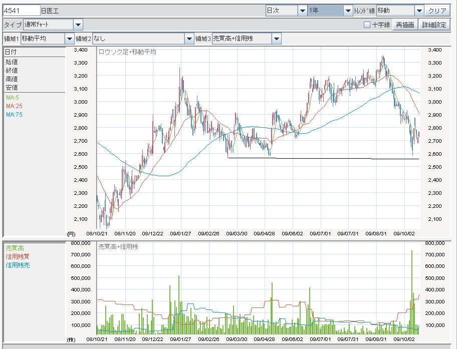 ジェネリック医薬品などのメーカー。4541:日医工です。