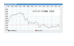 ついでで恐縮なのですが、今朝のコメント「今日の日経平均株価は? 10月27日」の中で、エクソン・モービルのチャートを掲載すべきところに、JPモルガン・チェースのチャートを入れてしまいました。申し訳ありません。遅くなりましたが、念のため両社の株価のチャートを載せておきます。