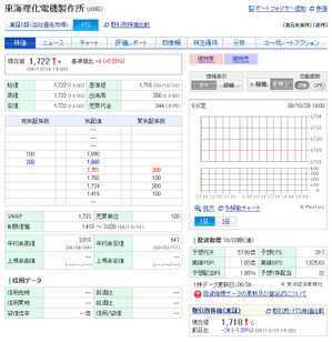 東海理化電機製作所(6995)高値1722円