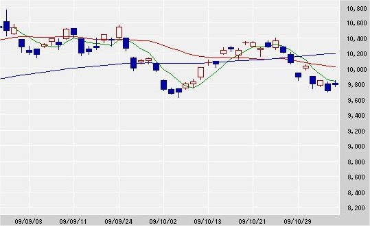 5日移動平均線 9,837↓