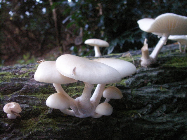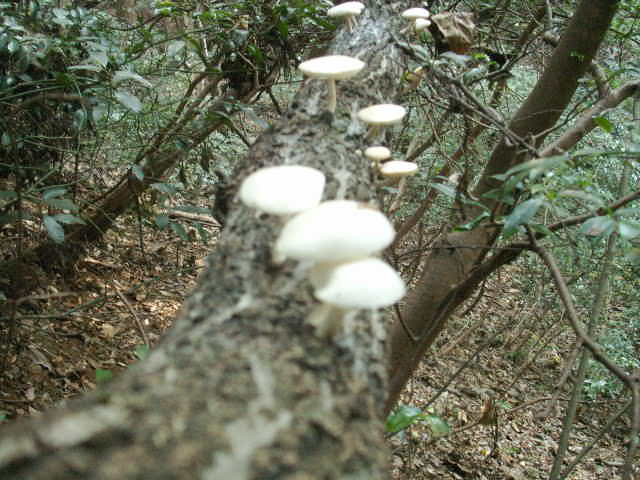 枯れ木や生木に生える白いキノコは、食菌が多いです