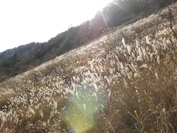 大谷崩の登山道でススキ太陽の光で輝いていました。