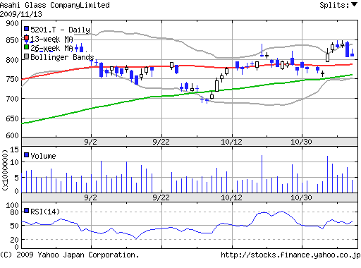 2009/11/11(水曜) 旭硝子   837円利益確定