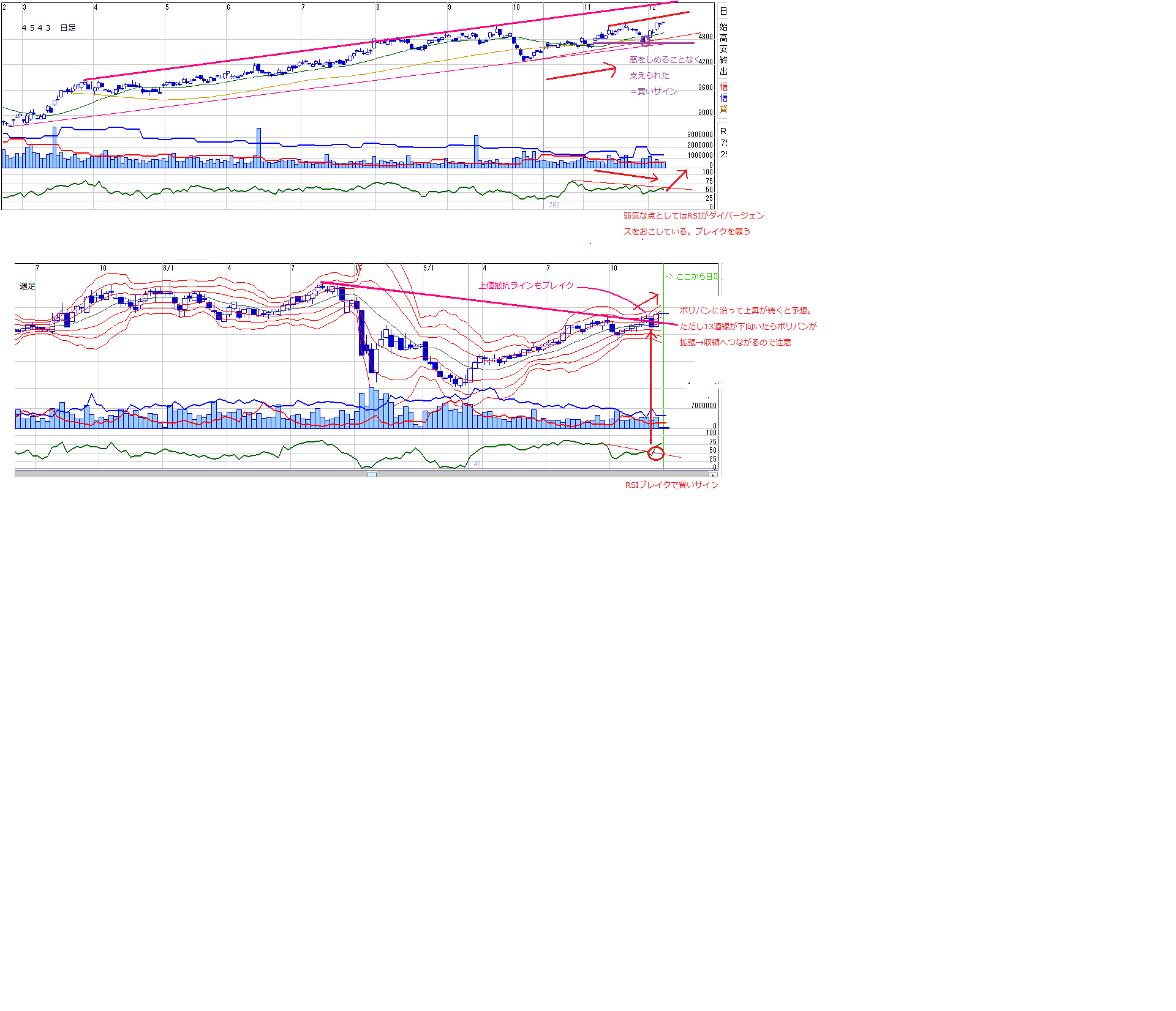・RSIのダイバージェンス等気になる点はあるが、特に売る理由もないので引き続き保有継続^^