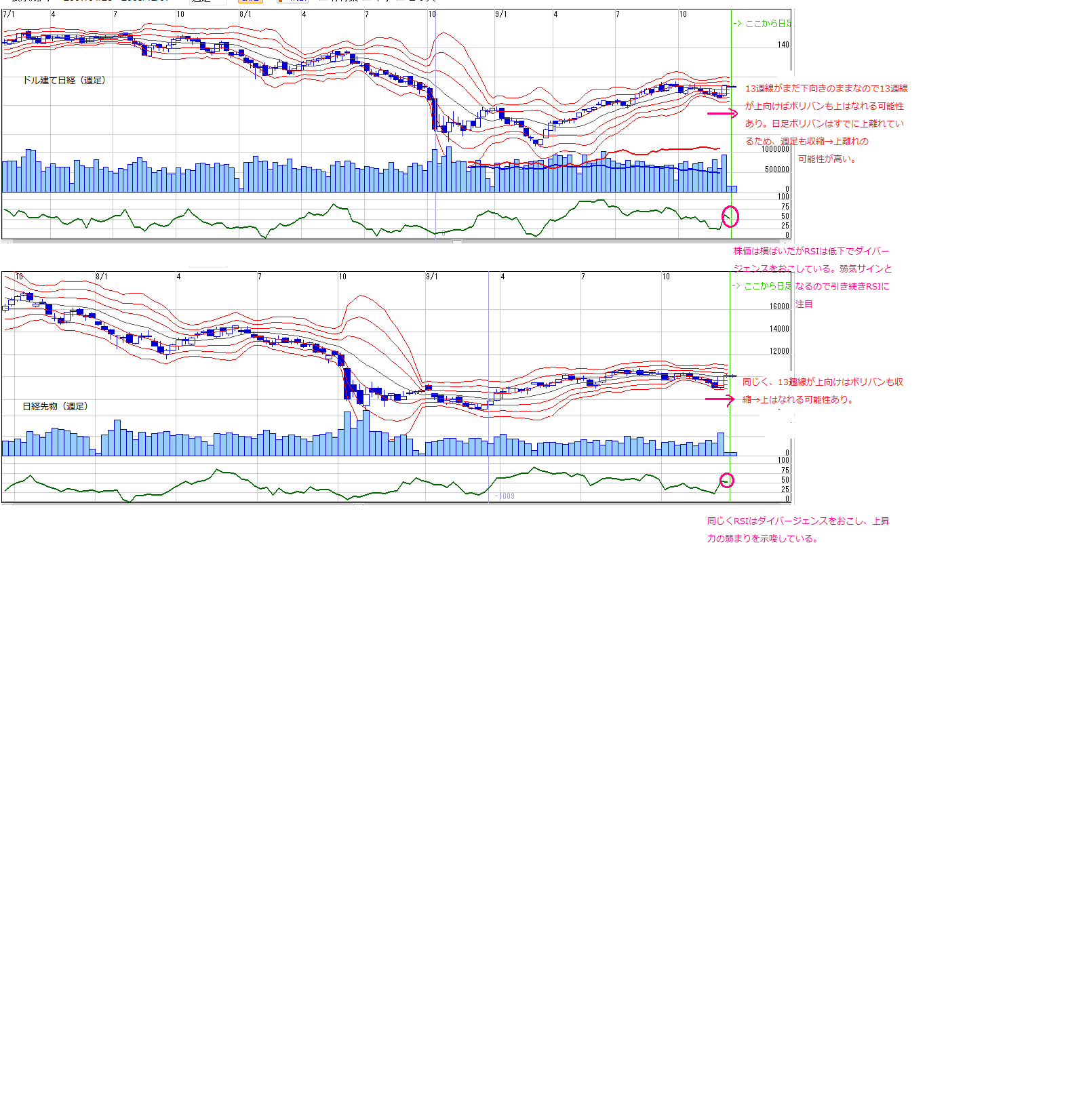 ・円建てチャートはとうとうファンラインを上ブレイクできましたので、8・31からの下落トレンドは終了した可能性があります。ただし、明日以降サイドこのラインを割り込んでしまうとだましになってしまうので、明日以降の動きが重要となります。