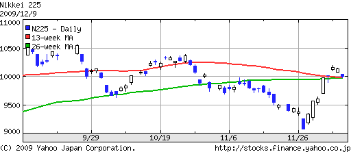2009/12/09 - ぷよすけさんの株式ブログ。タイトル:「あまり動かない日経平均」 本文:今週は週明けから日経平均が調整を続けていますが、この3日間に共通して言えることは「寄り付きから引けまでの間に値があまり動かない」ことです。図のように月曜から水曜までコマが3日連続しています。ちょうどチ