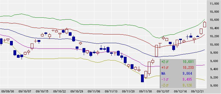 25日移動平均線 9,864↑
