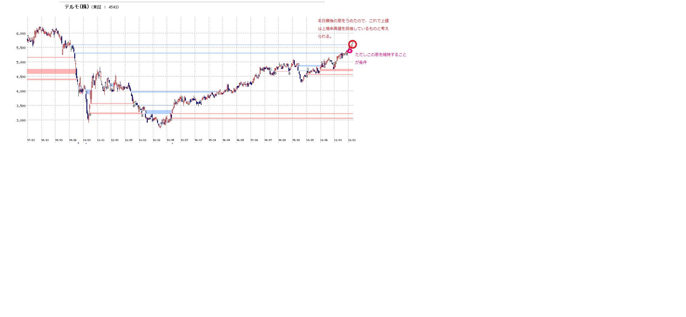・ただし、先に下の窓(5390-5400)を埋めてしまうと、短期弱気転換となってしまうので、下の窓はうめずに維持することが条件です