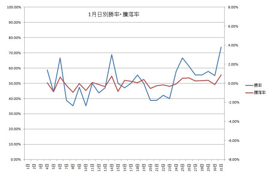 2010/01/05 - tetsuさんの株式ブログ。タイトル:「明日の確立」 本文:過去にさかのぼって 1月6日 の騰落率を調べました。 データは1984年1月から。引用元Yahoo!米国版 25年間のうち、 市場が開いていた:18日 上昇した日:12日
