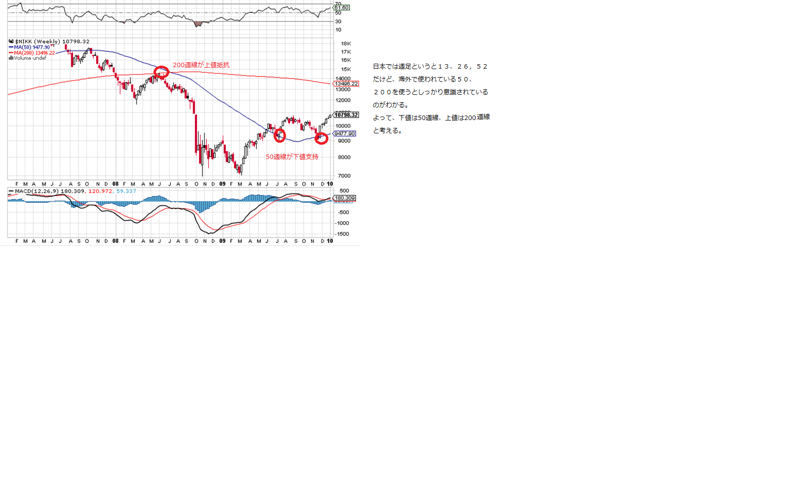 2010/01/11 - 月とスッポンさんの株式ブログ。タイトル:「来週のチャートポイント②」 本文:☆一目(画像1) ・基準線が横ばいor切り上げが続くならOK,切り下がり始めたら注意か。 ☆週足(画像2) ☆月足(画像3)