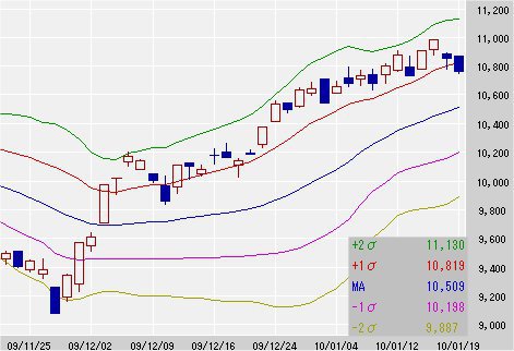 (始値10,866.83レンジ10,749.47-10,866.83±117.36)