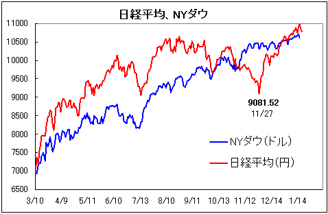 (チャートはダイヤモンドザイ)★日経平均・NYダウ