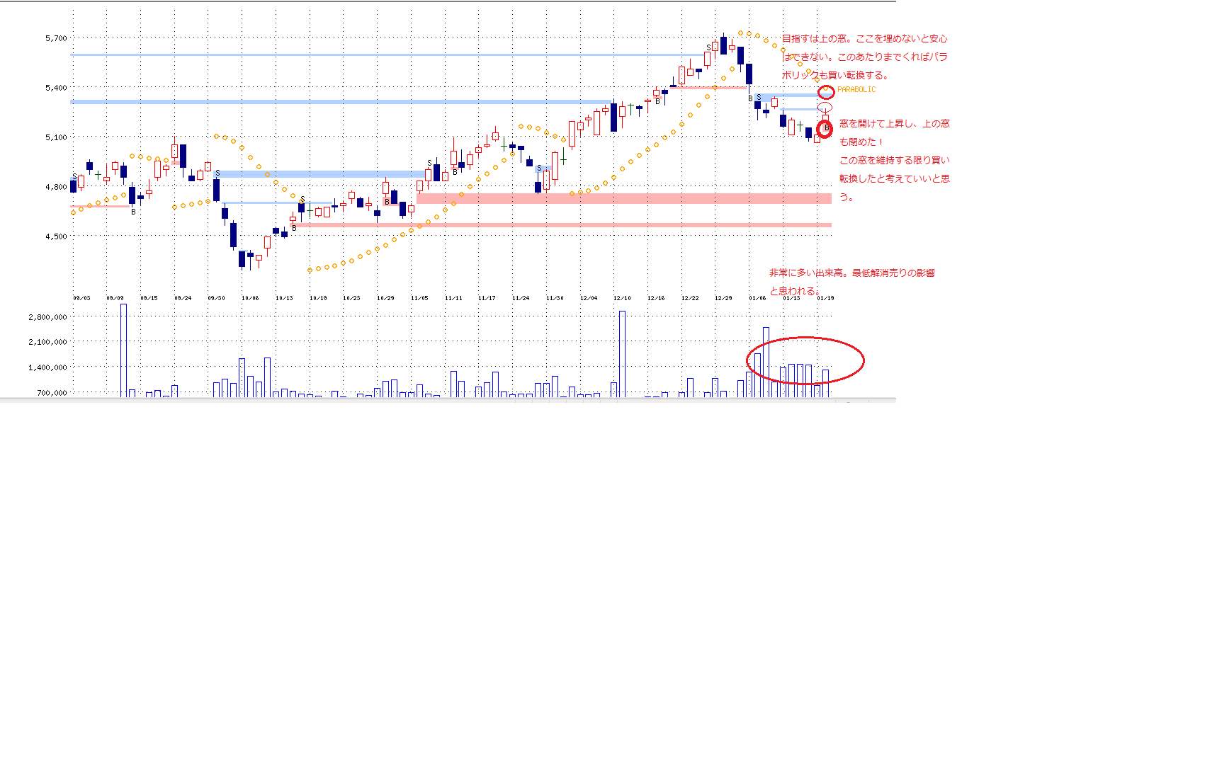 2010/01/20 - 月とスッポンさんの株式ブログ。タイトル:「4543テルモ☆チャート分析②8月~11月相場との類似点」 本文:画像が乗せきれませんでしたが先ほどの続きで窓とパラボリックの様子です(画像1) ①はこちら http://minkabu.jp/blog/show/205556