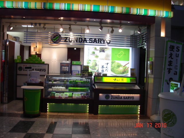 帰りに空港のずんだバーで食べたずんだ餅336円は美味しかったです。