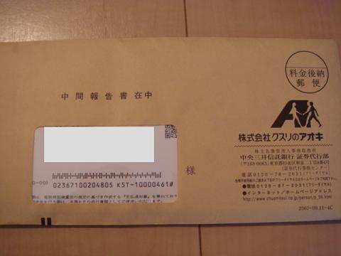2010/02/02 - 坂本彰さんの株式ブログ。タイトル:「クスリのアオキ 3398 配当金」 本文:昨日、クスリのアオキ 3398より 配当金が届きました。 金額はほとんどありませんが、ドラッグ ストア業界は店舗拡大に力を入れている 会社ばかりですね。