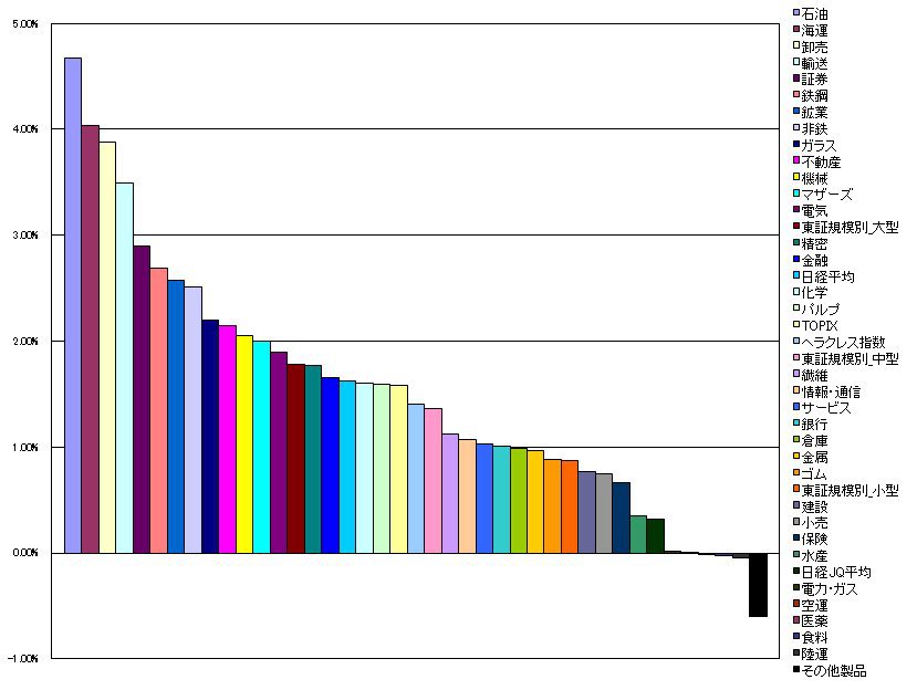2010/02/02 - tetsuさんの株式ブログ。タイトル:「指数・業種別騰落ランキング」 本文:1.石油 4.67%(-1.02%) 2.海運 4.04%(-2.62%) 3.卸売 3.88%(-2.09%) 4.輸送 3.50%(-1.53%) 5.証券 2.90%(-1.08%)