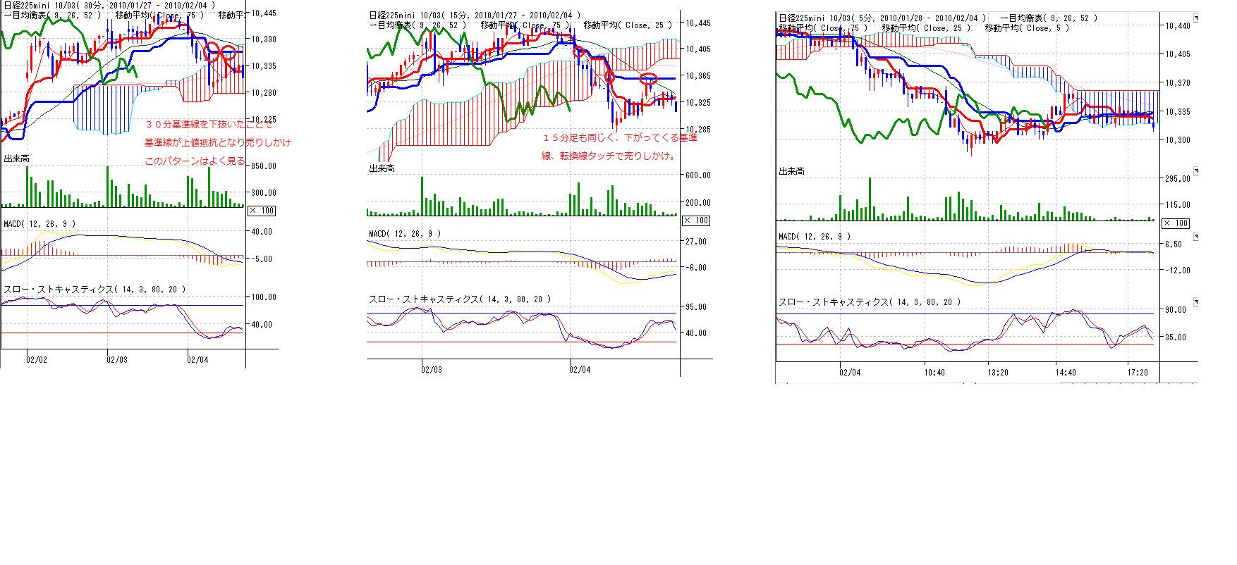 2010/02/04 - 月とスッポンさんの株式ブログ。タイトル:「2・4本日のチャート②」 本文:☆分足とMPのデイトレポイントとあたしのリカクポイント(画像1) ☆大口の仕掛けの様子(画像2) 何パターンかあるから覚えとくといいかも。 ①はこちら