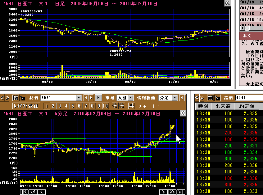 2010/02/10 - rikakusenninさんの株式ブログ。タイトル:「4541:日医工がもみぬけとな???」 本文:4541:日医工がもみぬけとなっております 第1関門は、お正月でした 第2関門は、成人式でした 第3関門は、2870で、目指してます ここは今日か明日でしょう