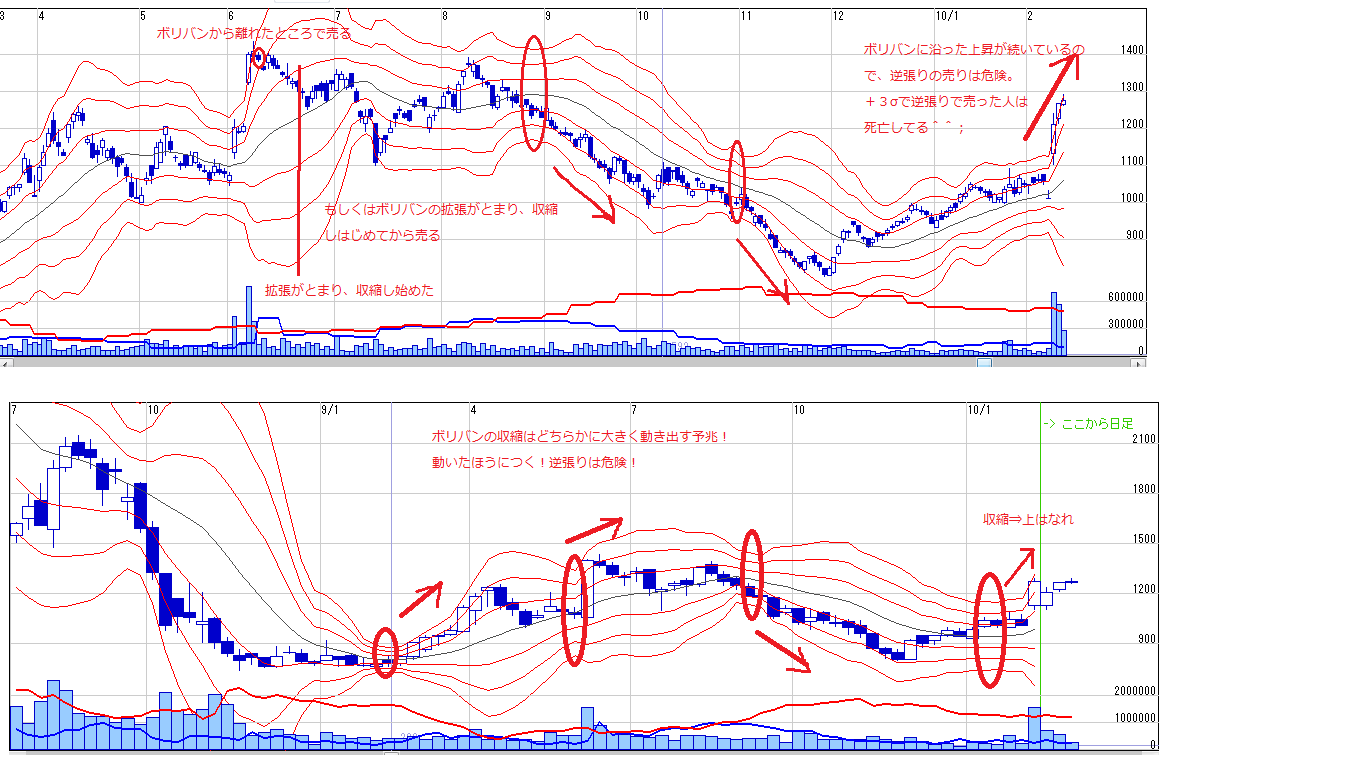 ボリバンの収縮⇒拡張したら、はなれたほうにつくのが原則。そこでの逆張りは死にます。