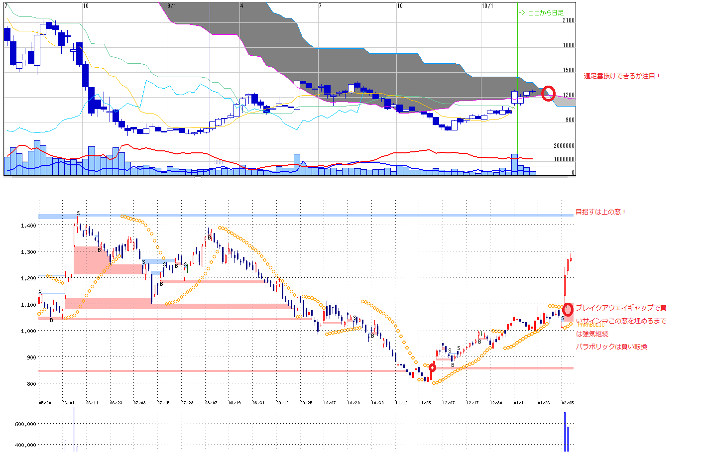 ・6月からの上値抵抗ラインをブレイクしたので、下落トレンドは終了したと考える。(ただし、再度このラインを割り込まないことが必要)