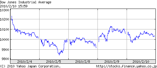 2010/02/11 - ぷよすけさんの株式ブログ。タイトル:「ダウはしばらく下がらないと考えます」 本文:この図ではNYダウは短期上昇トレンドになっているので、今週中の10000割れはないかもしれません。ただ日経はその米帝にトヨタが潰されて暴落するかもしれません・・・・・