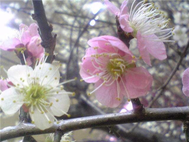 はな , 梅 まつり:各地で梅まつりがされてるようです。梅の中でも一枝で紅白に咲き分ける梅もあります。これは日月といいます。もう一つは名前は忘れましたがいい梅でした。