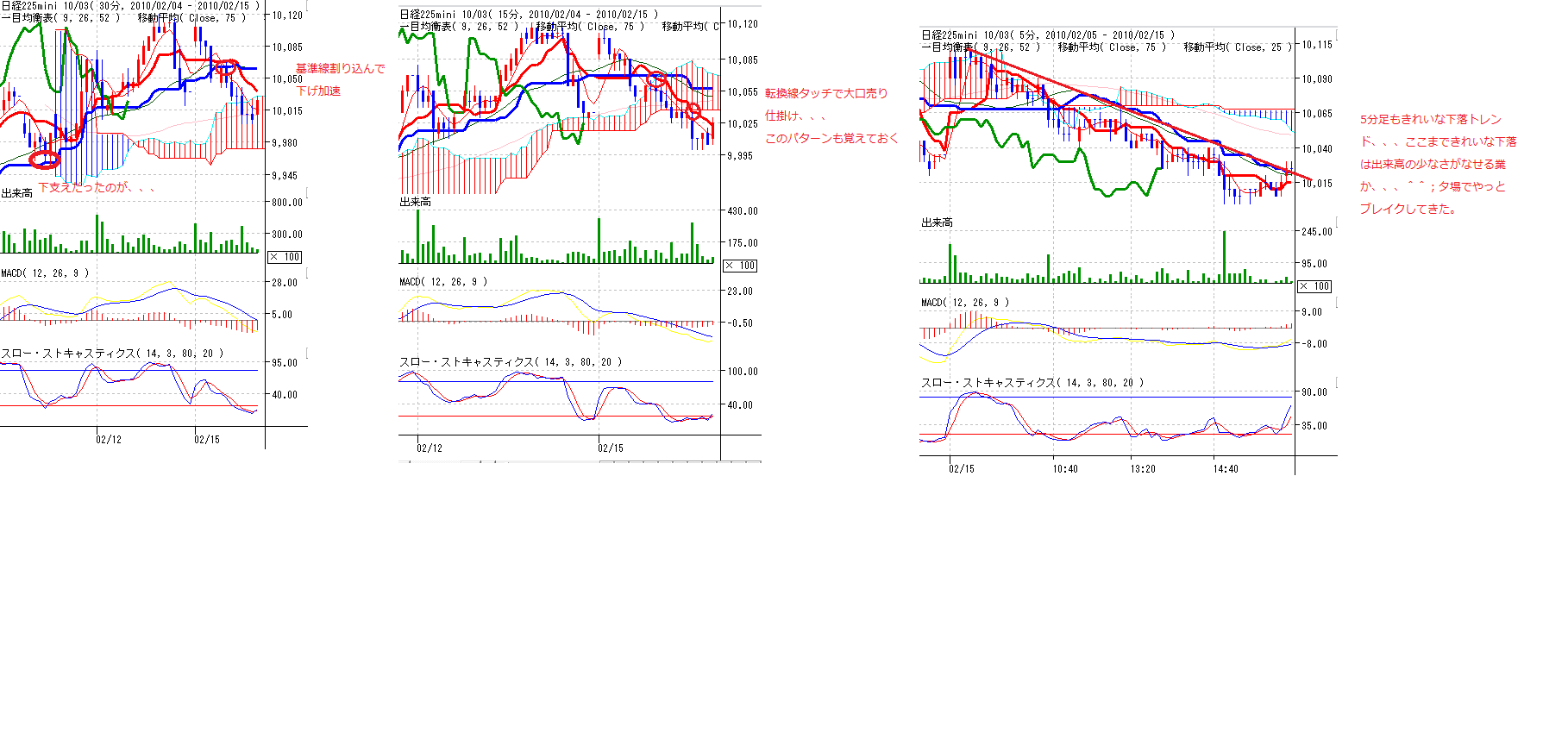 2010/02/15 - 月とスッポンさんの株式ブログ。タイトル:「2・15本日のチャート②」 本文:☆分足とMPのポイント(画像1) ☆大口の仕掛けの様子(画像2) ①はこちら http://minkabu.jp/blog/show/213115