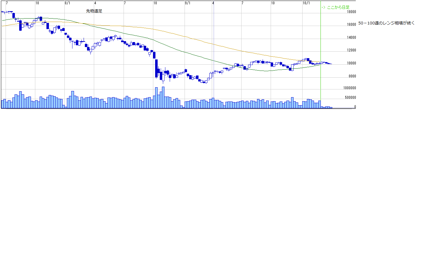 ・ざっくりいえば去年夏からは50週-100週線内での動き。