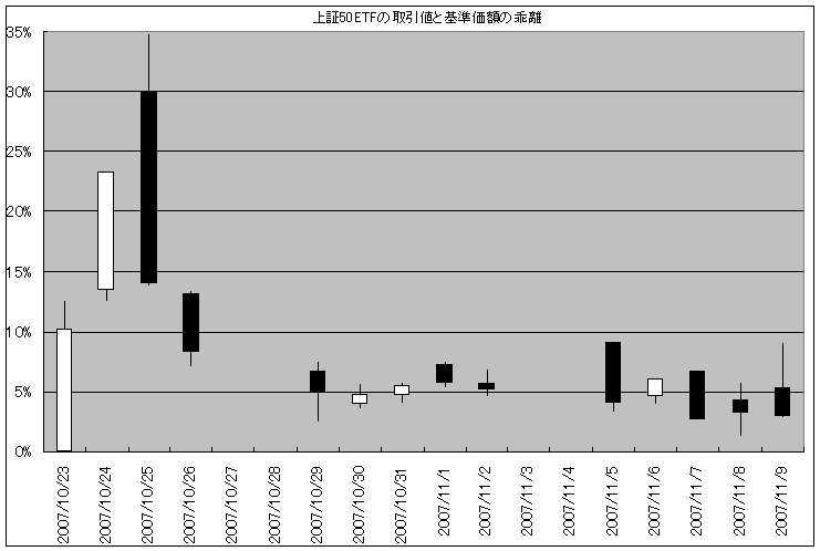 というわけで、基準価額と大証取引値(四本値)の乖離をグラフにしてみました。