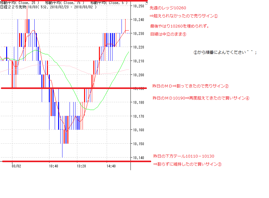 2010/03/02 - 月とスッポンさんの株式ブログ。タイトル:「3・2本日のチャート②」 本文:☆分足のポイント(画像1) ☆30分足、15分足(画像2) ①はこちら http://minkabu.jp/blog/show/217381