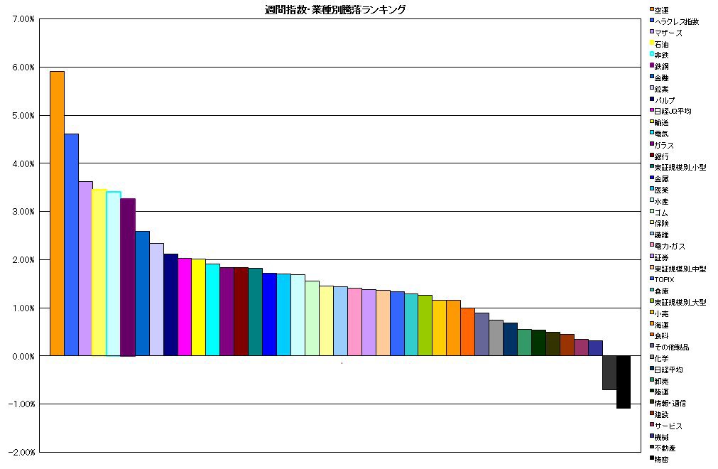 週間 指数・業種別騰落ランキング