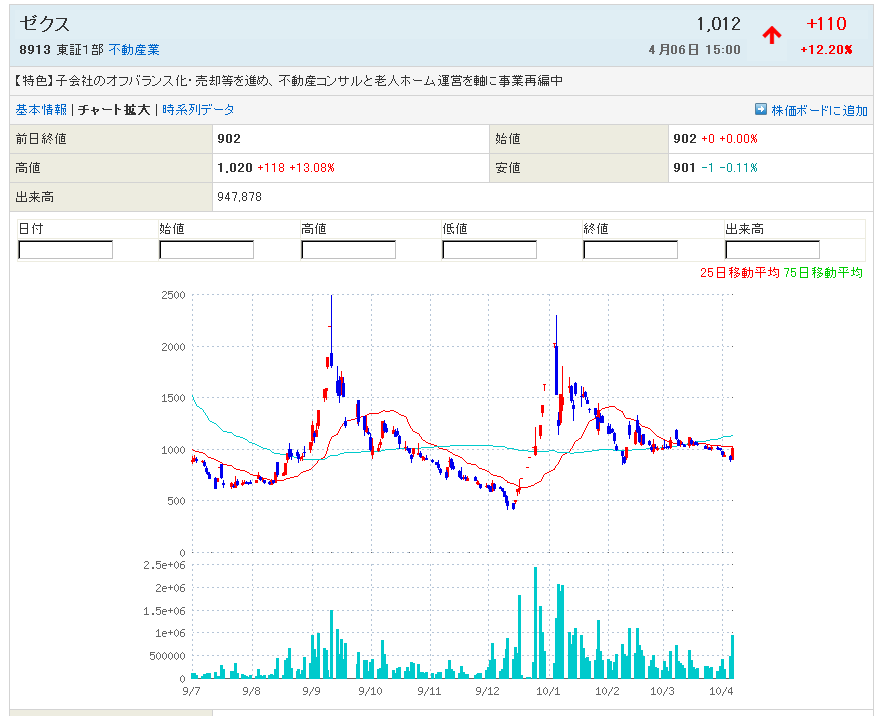 2010/04/07 - rikakusenninさんの株式ブログ。タイトル:「8913:ゼクスは微妙な感じに???」 本文:前回の日記で、 8913:ゼクスは微妙な感じに???、引き剥がしがあるかもと書いてましたが、まさしく880までの引き剥がしがありました 昨日は急騰しましたが、注意してお進みください