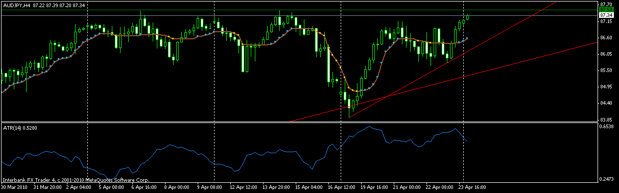 2010/04/26 - ■c( ‘д‘)っ旦さんの株式ブログ。タイトル:「#2 天井買いか否か」 本文:<保有中ポジション> EUR/JPY - 125.85L(S/L:124.81) AUD/JPY - 87.37L(S/L:86.39) おはようございます。