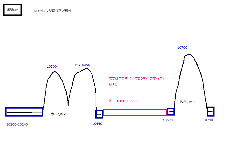 2010/05/07 - 月とスッポンさんの株式ブログ。タイトル:「5/7本日のチャート①週間MPはDDでレンジ切り下げ」 本文:☆週間MP(画像1) ☆先週の週間MP(画像2) 上値の参考に