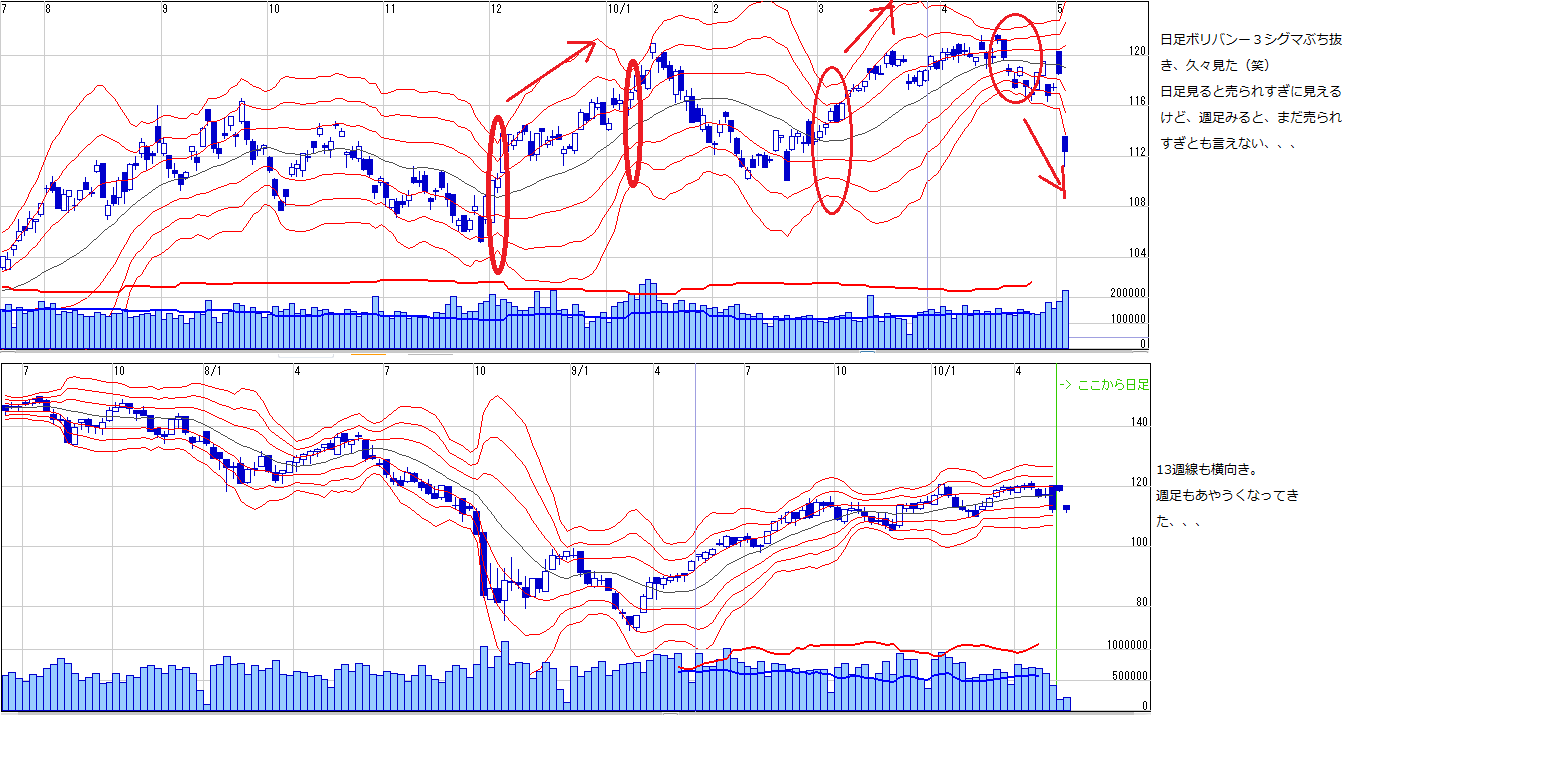 ・週足トレンドラインも割り込んだ事から、去年からの上昇トレンドは終了したと考えてるようです。
