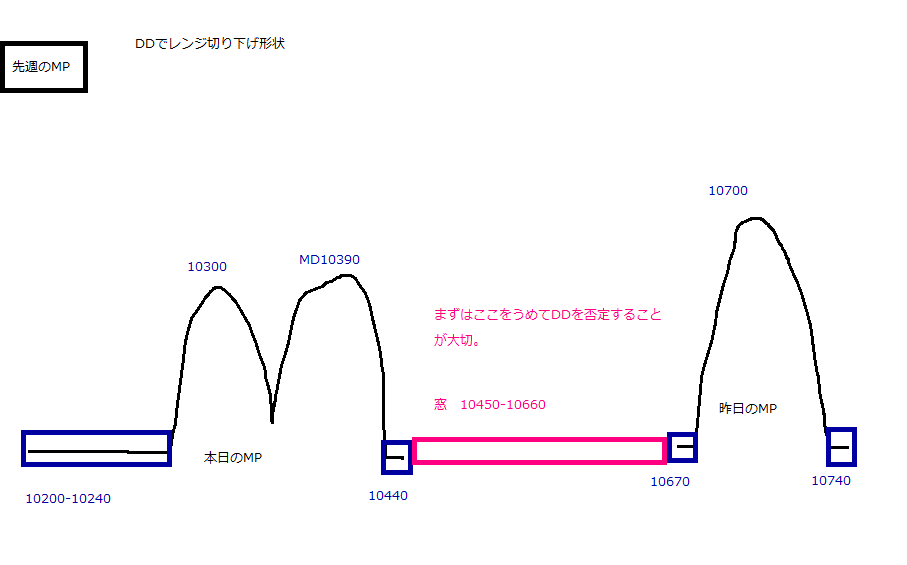 2010/05/10 - 月とスッポンさんの株式ブログ。タイトル:「5・10本日のチャート①DDでれんじ切り上げ」 本文:☆本日のMP(画像1) ☆先週のMP(画像2) 先週のレッジと今日のレッジにはさまれたレンジ相場になると思う。 (どちらかを埋めるまでは)