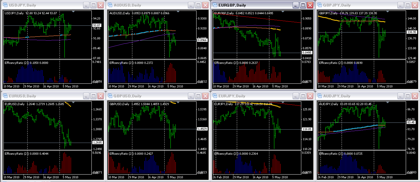 日足で見ると、ドル円とNZ円の効率レシオが買いに転換しました。