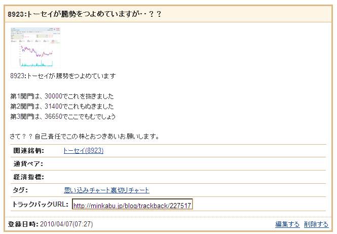 2010/05/14 - rikakusenninさんの株式ブログ。タイトル:「8923:トーセイが騰勢をつよめていますが・・??」 本文:4月7日の日記で、 8923:トーセイが騰勢をつよめていますが・・?? と書きましたが本日は9年6月の45000に迫っております 36000どこは、やはりモミモミしましたね さて今後は??