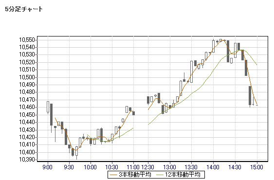 (始値10,453.40レンジ10,551.69-10,390.77±-160.92)