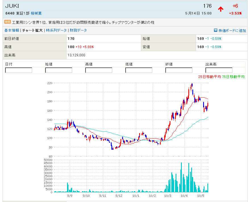 2010/05/17 - rikakusenninさんの株式ブログ。タイトル:「6440:JUKI 今後の動きに注目を」 本文:6440:JUKI 今後の動きに注目をしましょう 5月14日に減益発表と、来期増益発表とオマケで信用規制の解除発表がありましたね 上げるのか下げるのか、悩ましいところです