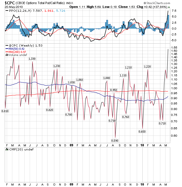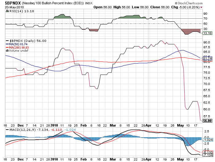 2010/05/21 - Newジェントルマンさんの株式ブログ。タイトル:「NYは大幅下落で短期調整 日米の違い」 本文:NYはあの長い下髭をつけた5/6の二番底を5/13から7日間目の本日付ける可能性がある。今夜はSQで特殊な日であり、来週から続落の可能性はあるが、各種指標が弱気に大きく傾いており調整期間が短くて済むか
