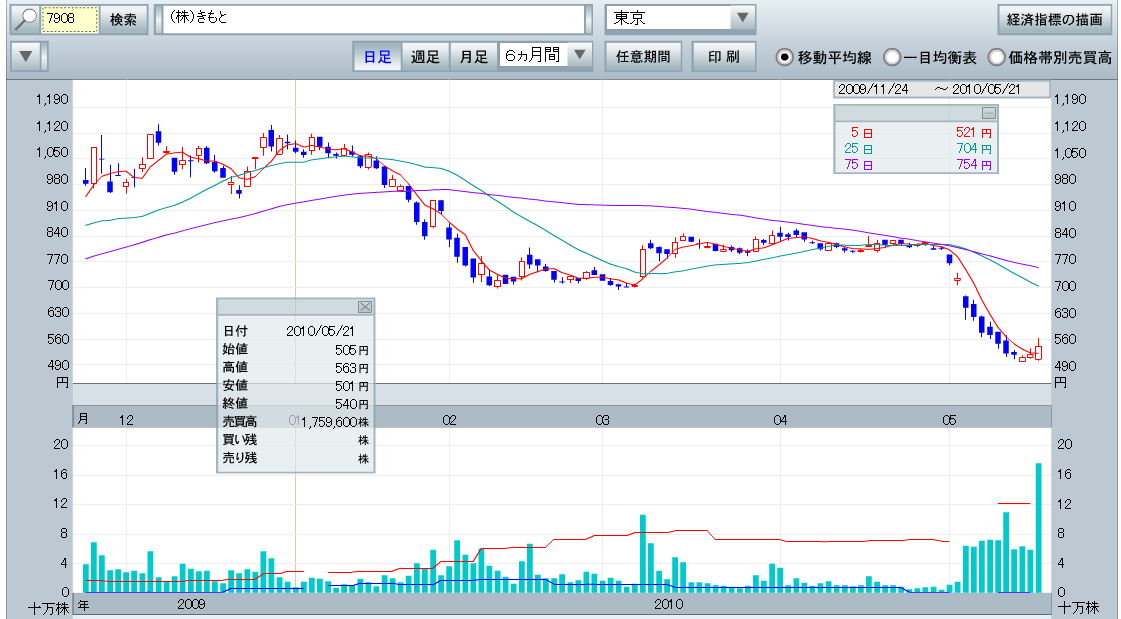 2010/05/23 - rikakusenninさんの株式ブログ。タイトル:「7908:きもとは、きっともとが獲れるよ!」 本文:7908:きもとは、きっともとが獲れるよ! ほんまか??? きれいな買いサインで先週は終わりました 今週はきっと きもとはきっと 第1関門は、735でこれを抜きましょう