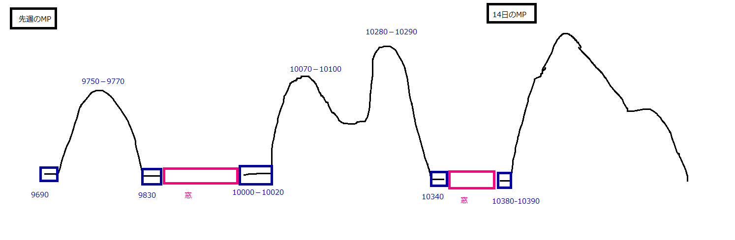 2010/05/25 - 月とスッポンさんの株式ブログ。タイトル:「5・25本日のチャート①」 本文:☆今週の週間MP(画像1) ☆先週の週間MP(画像2) レンジ切り下げが続く、、、