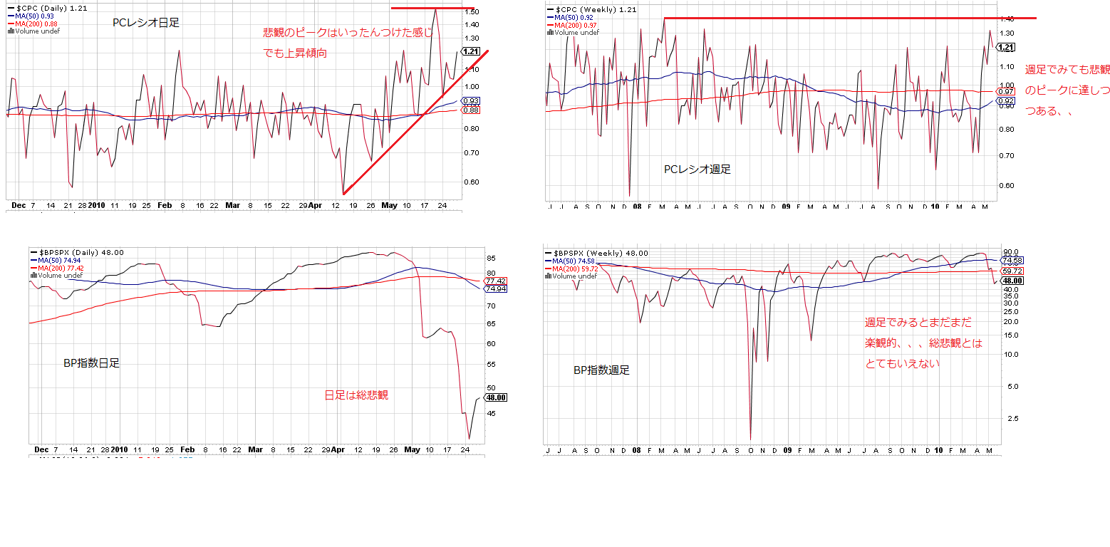 ☆投資家心理は日足だと弱気のピークをいったんつけた感じだけど、週足でみると、まだまだ楽観、、、