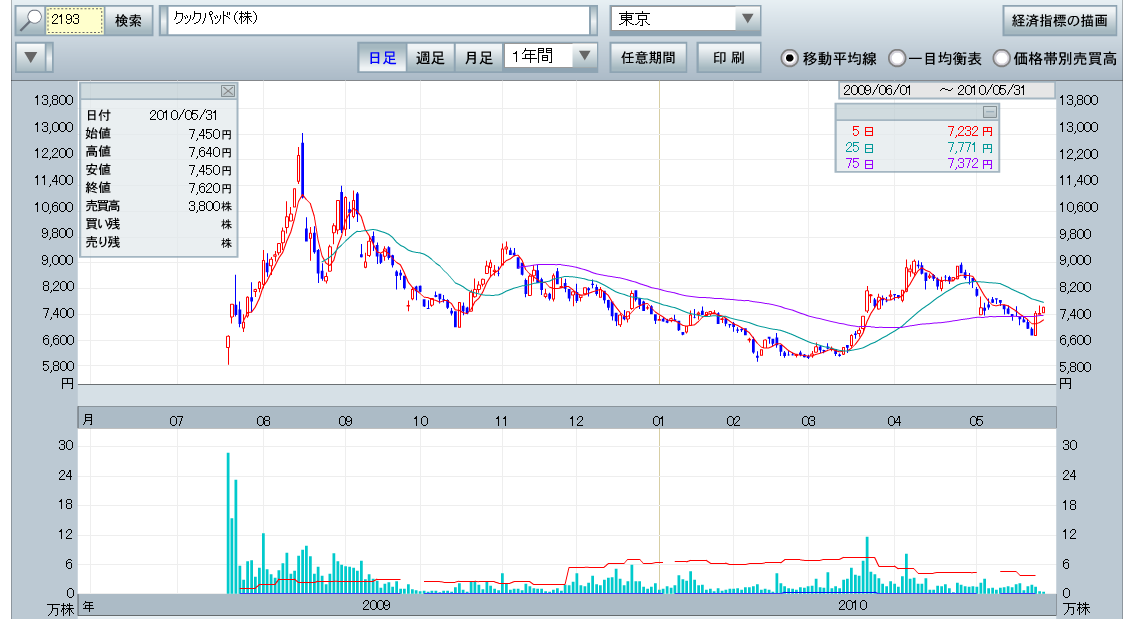 2010/06/01 - rikakusenninさんの株式ブログ。タイトル:「2193:クックパッドがおいしいと思います??」 本文:2193:クックパッドがおいしいと思います? かんたんメニューが大人気の会社です 変型の調整大波動を3波こしらえましたので、反騰体勢にあると思います 発射台を形成中??? さて??