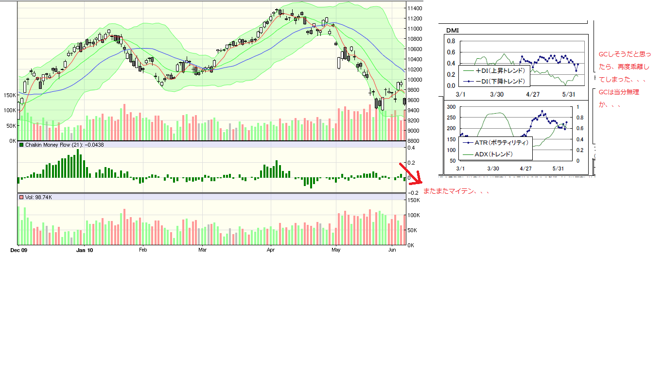 2010/06/07 - 月とスッポンさんの株式ブログ。タイトル:「6/7本日のチャート①」 本文:☆今日のMP(画像1) ☆5・27のMP(画像2) 下値のポイントとして参考に ☆CMF(画像3) その他のテクニカルポイントはこちら