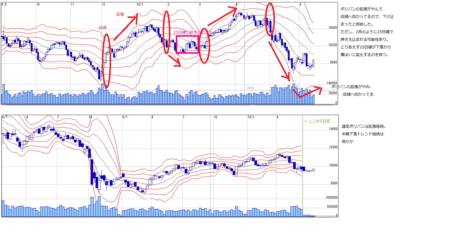・日足でみても週足でみても、トレンドライン割れとなり、去年3月からの上昇トレンドは終了した事になる