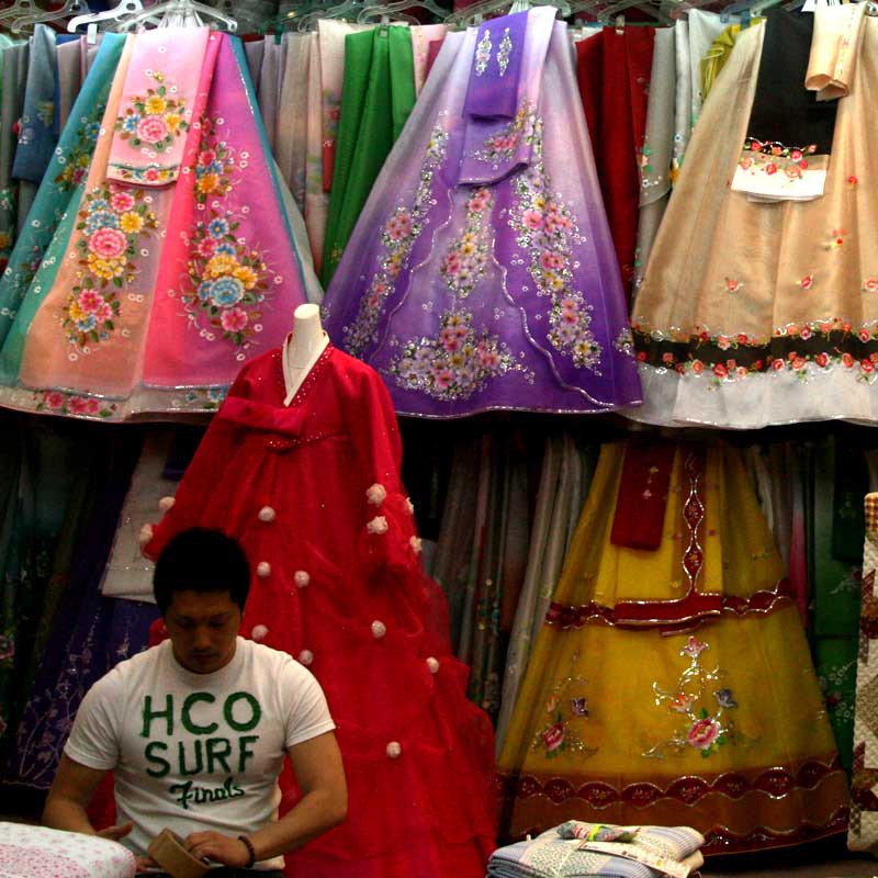 うわさに聞いていたよりは、こざっぱりと綺麗な通りでしたが、キムチの臭いが漂 う街並みでした。 (右側の写真)